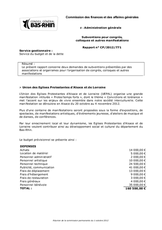 Le présent rapport concerne deux demandes de subventions présentées par des associations et organismes pour l'organisation de congrès, colloques et autres manifestations