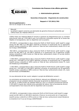 Le présent rapport concerne une demande de garantie d'emprunt présentée par l'Office Public de l'Habitat-OPUS 67