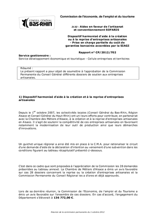 Le présent rapport a pour objet de soumettre à l'approbation de la Commission Permanente du Conseil Général différents dossiers de soutien aux entreprises artisanales.