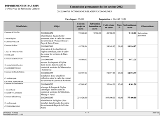 Répartition de subventions au titre de l'aide au patrimoine religieux et au petit patrimoine