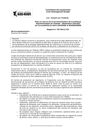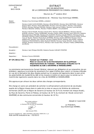 Le présent rapport concerne le lancement, sous maîtrise d'ouvrage départementale, de deux études relatives à la mutabilité du bâti dans le cadre de la mise en oeuvre de la territorialisation de la politique départementale de l'habitat sur le territoire du schéma de cohérence territorial (SCoT) de la Région de Saverne, à Wasselonne et à Saverne.