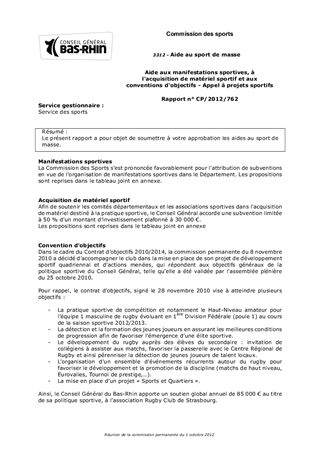 Le présent rapport a pour objet de soumettre à votre approbation les aides au sport de masse.