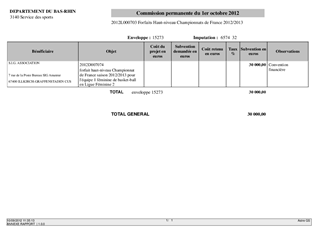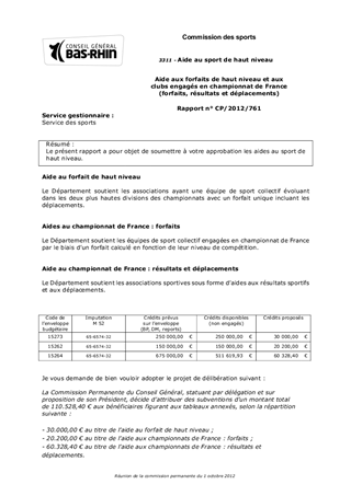 Le présent rapport a pour objet de soumettre à votre approbation les aides au sport de haut niveau.