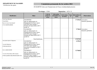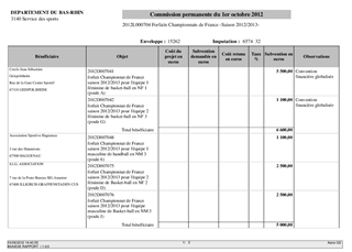 Aide aux forfaits de haut niveau et aux clubs engagés en championnat de France (forfaits, résultats et déplacements)