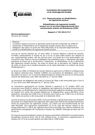 Le présent rapport concerne la demande d'aide financière présentée par OPUS 67 concernant la réhabilitation de 33 logements locatifs sociaux dans le cadre de la délégation des aides à la pierre de l'Etat (PALULOS) et du dispositif départemental d'aide à la réhabilitation de logements locatifs sociaux.