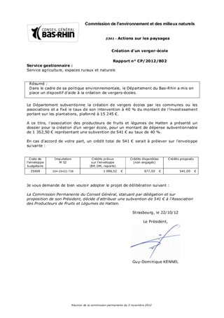 Dans le cadre de sa politique environnementale, le Département du Bas-Rhin a mis en place un dispositif d'aide à la création de vergers-écoles.