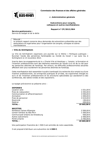 Subventions pour congrès, colloques et autres manifestations