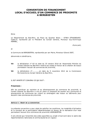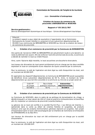 Le présent rapport a pour objet de soumettre à l'approbation de la Commission Permanente du Conseil Général le versement d'une subvention départementale de 90.000 € aux communes de BERGBIETEN et WISCHES au titre de la création de locaux de commerce de proximité.