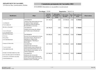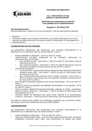 Le présent rapport vise à proposer l'attribution, aux collectivités figurant sur la liste annexée, de subventions pour les travaux relatifs à l'alimentation en eau potable et à l'assainissement.