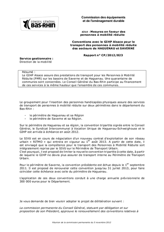 Conventions avec le GIHP Alsace pour le transport des personnes à mobilité réduite des secteurs de HAGUENAU et SAVERNE