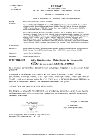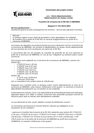 Le présent rapport a pour objet de soumettre à votre approbation les modalités de transfert d'une partie de la RD 501 en traverse d'agglomération au profit de la commune d'OBERNAI.