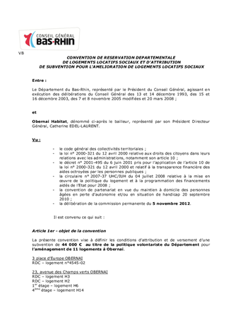 Le présent rapport concerne la demande d'aide financière présentée par OBERNAI-HABITAT concernant des travaux d'adaptation au handicap et à la perte d'autonomie pour 11 logements locatifs sociaux dans le cadre du dispositif départemental d'aide à la réhabilitation de logements locatifs sociaux.