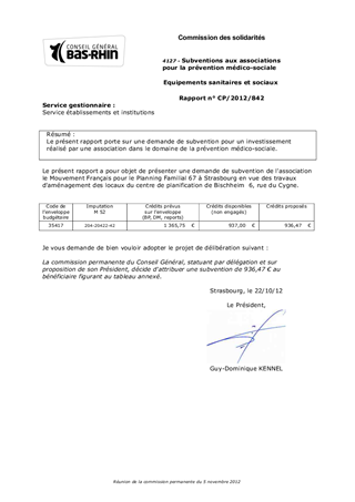 Le présent rapport porte sur une demande de subvention pour un investissement réalisé par une association dans le domaine de la prévention médico-sociale.