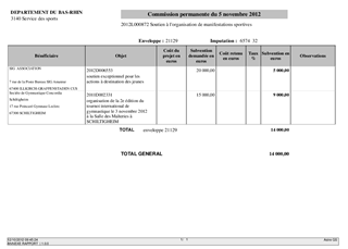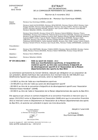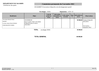 Aide aux manifestations sportives, à l'acquisition de matériel sportif, au titre des conventions d'objectifs et de développement sportif et à l'Association de la Maison départementale des sports du Bas-Rhin