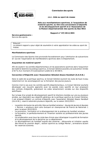 Le présent rapport a pour objet de soumettre à votre approbation les aides au sport de masse.
