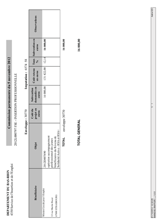 Le présent rapport concerne une demande complémentaire de subvention 2012 présentée dans le cadre du cofinancement européen FSE géré par le Conseil général et faisant suite à l'appel à projet FSE lancé en début d'année. Le montant global de la subvention européenne pour cette opération s'élève à 16 000 €.