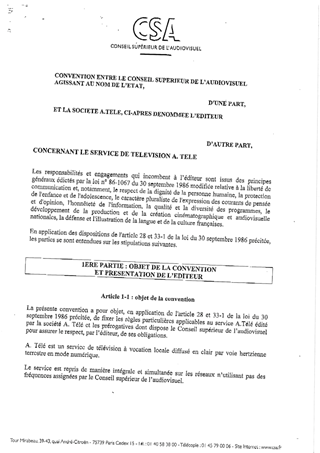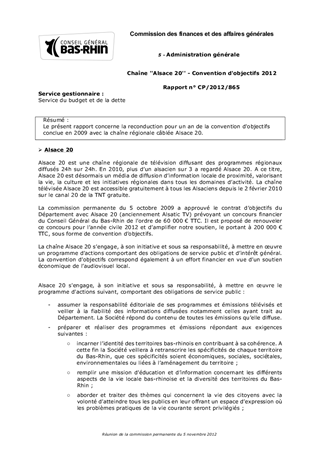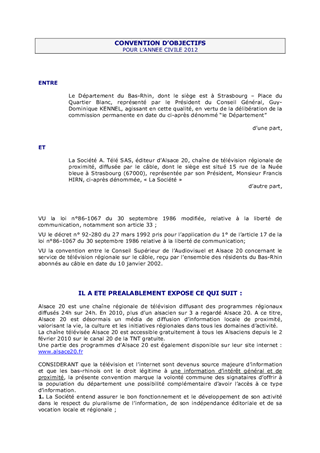 Chaîne ''Alsace 20'' - Convention d'objectifs 2012
