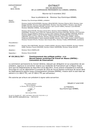 Nouvel Espace numérique de travail en Alsace (ENTEA) - Convention de financement