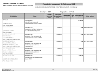 Répartition de l'enveloppe de fonctionnement en faveur des personnes handicapées