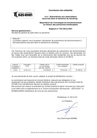 Le présent rapport vise à proposer l'attribution de subventions de fonctionnement à des associations oeuvrant dans le domaine du handicap.