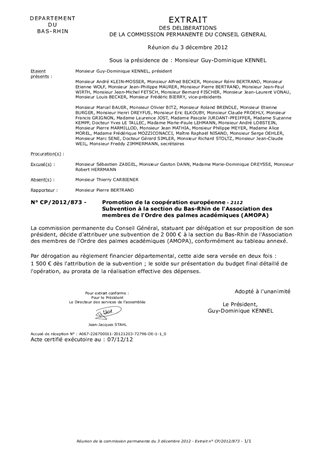 Subvention à la section du Bas-Rhin de l'Association des membres de l'Ordre des palmes académiques (AMOPA)