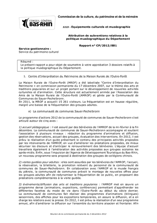 Le présent rapport a pour objet de soumettre à votre approbation 3 dossiers relatifs à la politique muséographique du Département.