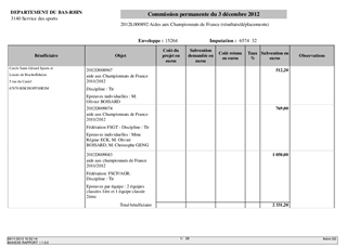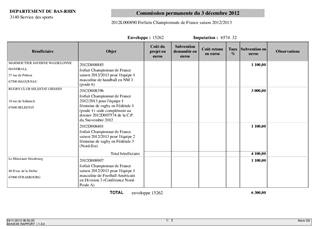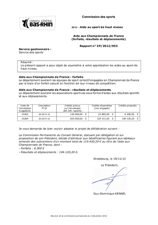 Aide aux Championnats de France (forfaits, résultats et déplacements)