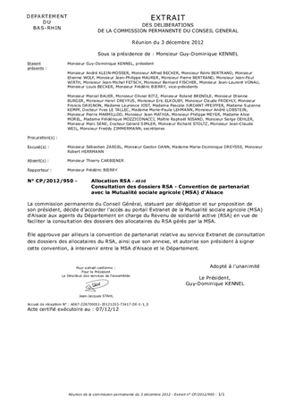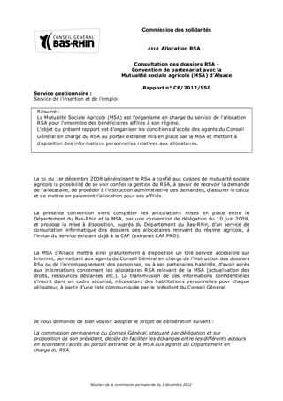 Consultation des dossiers RSA - Convention de partenariat avec la Mutualité sociale agricole (MSA) d'Alsace