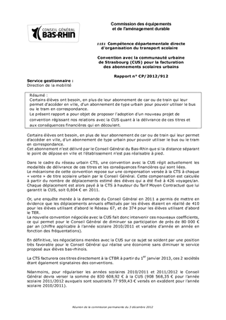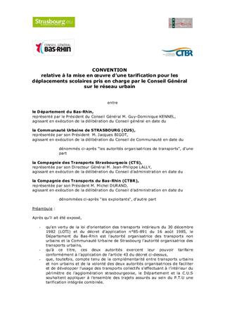 Certains élèves ont besoin, en plus de leur abonnement de car ou de train qui leur permet d'accéder en ville, d'un abonnement de type urbain pour pouvoir utiliser le bus ou le tram en correspondance. Le présent rapport a pour objet de proposer l'adoption d'un nouveau projet de convention régissant nos relations avec la CUS quant à la délivrance de ces titres et aux conséquences financières qui en découlent.
