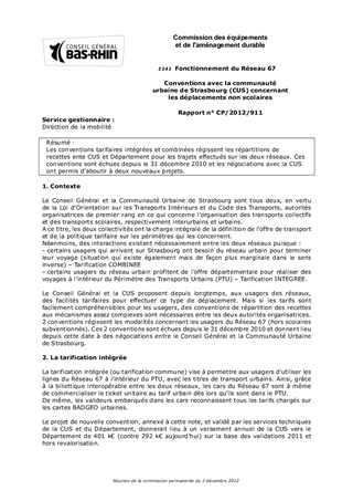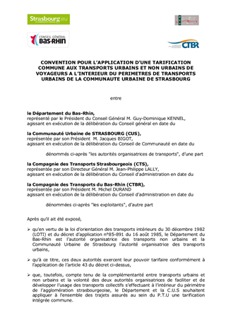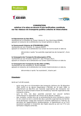Les conventions tarifaires intégrées et combinées régissent les répartitions de recettes ente CUS et Département pour les trajets effectués sur les deux réseaux. Ces conventions sont échues depuis le 31 décembre 2010 et les négociations avec la CUS ont permis d'aboutir à deux nouveaux projets.