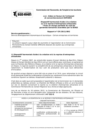 Le présent rapport a pour objet de soumettre à l'approbation de la Commission Permanente du Conseil Général différents dossiers de soutien aux entreprises artisanales.