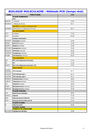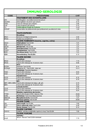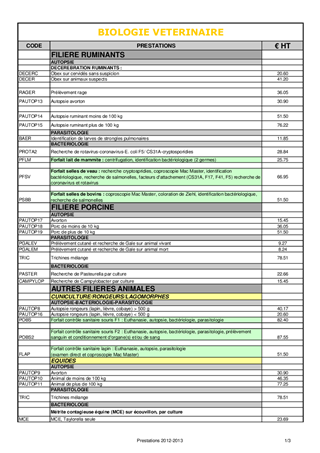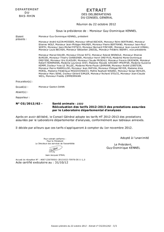 Réévaluation des tarifs 2012-2013 des prestations assurées par le Laboratoire départemental d'analyses