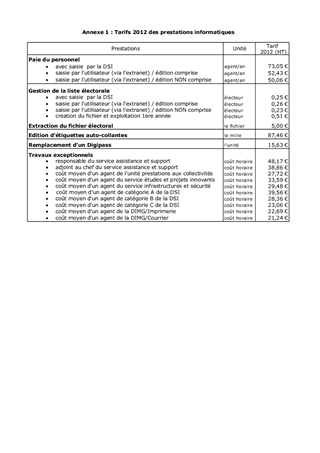 Tarifs 2012 des prestations assurées par la Direction des systèmes d'information du Département