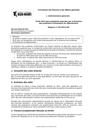 Le présent rapport a pour objet de soumettre à votre approbation les nouveaux tarifs 2012 pour les prestations aux collectivités assurées par la Direction des systèmes d'information du Département.