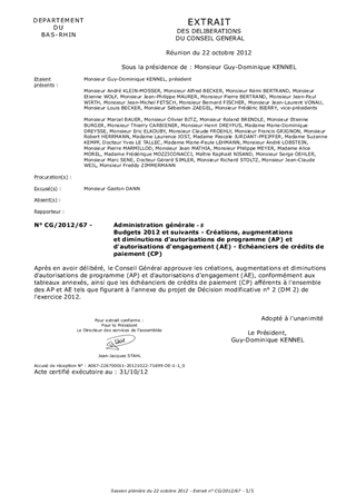 Budgets 2012 et suivants - Créations, augmentations et diminutions d'autorisations de programme (AP) et d'autorisations d'engagement (AE) - Echéanciers de crédits de paiement (CP)