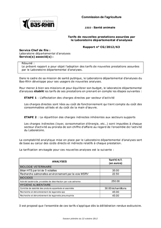 Le présent rapport a pour objet l'adoption des tarifs de nouvelles prestations assurées par le Laboratoire départemental d'analyses.