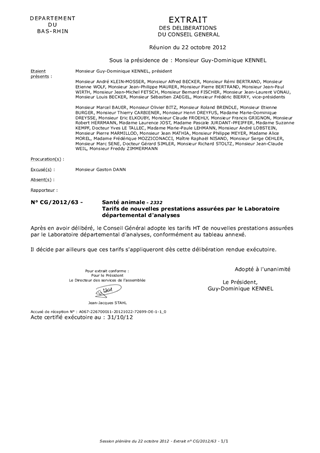 Tarifs de nouvelles prestations assurées par le Laboratoire départemental d'analyses