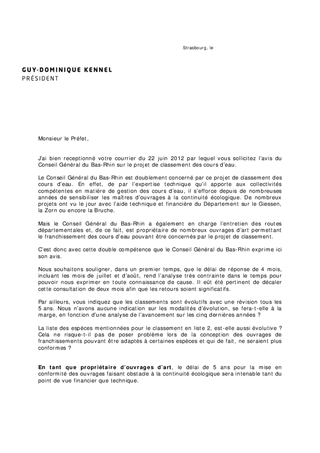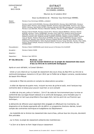 Le présent rapport vise à proposer l'avis du Conseil Général du Bas-Rhin au projet de classement des cours d'eau dans le département au titre de la continuité écologique, tel que prévu à l'article L214-17 du code de l'environnement.
