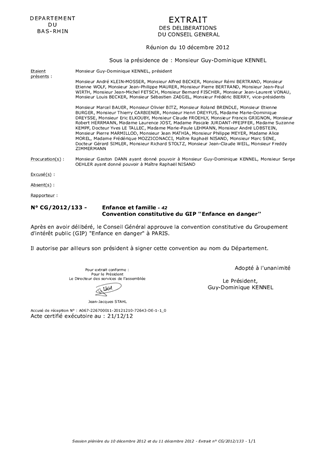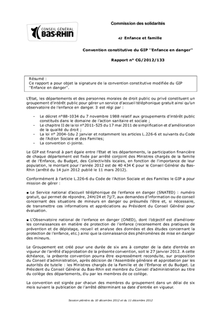Ce rapport a pour objet la signature de la convention constitutive modifiée du GIP ''Enfance en danger''.
