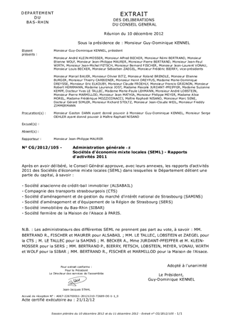 Le présent rapport a pour objet de soumettre à votre approbation le rapport d'activités 2011 des Sociétés d'Economie Mixte Locales (SEML) dans lesquelles le Département détient une partie du capital.
