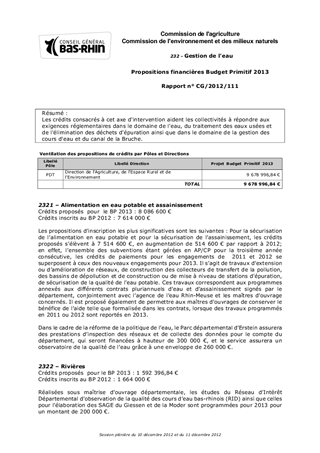 Les crédits consacrés à cet axe d'intervention aident les collectivités à répondre aux exigences réglementaires dans le domaine de l'eau, du traitement des eaux usées et de l'élimination des déchets d'épuration ainsi que dans le domaine de la gestion des cours d'eau et du canal de la Bruche.
