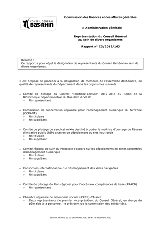 Ce rapport a pour objet la désignation de représentants du Conseil Général au sein de divers organismes.