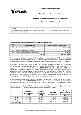 Le présent rapport a pour objet le vote des crédits 2013 en matière d'insertion et de lutte contre les exclusions.
