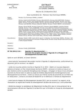 Avancée des projets inscrits à l'Agenda 21 et Rapport de développement durable 2012