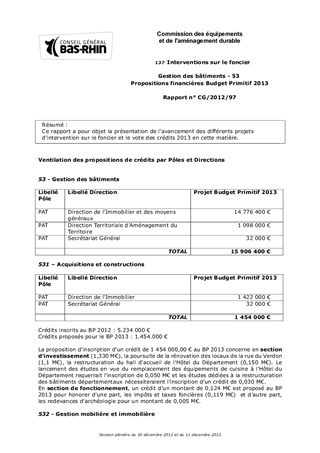 Gestion des bâtiments - 53 Propositions financières Budget Primitif 2013