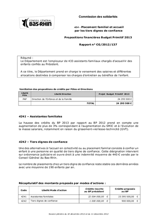 Le Département est l'employeur de 433 assistants familiaux chargés d'accueillir des enfants confiés au Président. A ce titre, le Département prend en charge le versement des salaires et différentes allocations destinées à compenser les charges d'entretien au bénéfice de l'enfant.