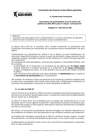 Convention de participation entre le Département et le Centre de Gestion du Bas-Rhin (CDG 67) dans le domaine de la protection sociale complémentaire.