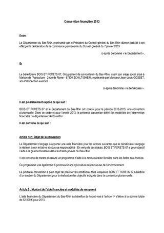 Le morcellement de la forêt alsacienne a des effets néfastes sur la gestion forestière et le paysage. Les dégâts provoqués par l'ouragan Lothar ont aggravé cette situation. L'objectif de ce rapport est de proposer le renouvellement d'un dispositif départemental d'animation qui vise l'amélioration foncière forestière, par l'animation de bourses foncières forestières. Un projet de convention entre le Conseil Général du Bas-Rhin et Bois et Forêts 67 a été élaboré afin de détailler les objectifs du poste d'animateur foncier forestier et la participation financière du Conseil Général du Bas-Rhin.