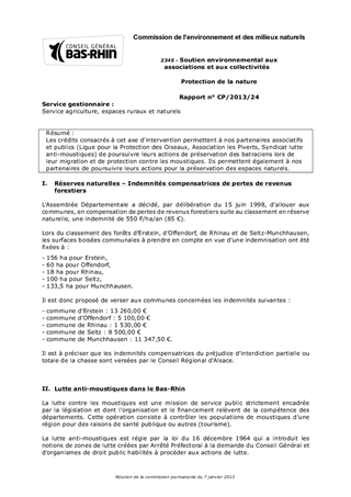 Les crédits consacrés à cet axe d'intervention permettent à nos partenaires associatifs et publics (Ligue pour la Protection des Oiseaux, Association les Piverts, Syndicat lutte anti-moustiques) de poursuivre leurs actions de préservation des batraciens lors de leur migration et de protection contre les moustiques. Ils permettent également à nos partenaires de poursuivre leurs actions pour la préservation des espaces naturels.