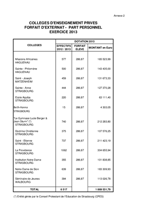 Dotations de fonctionnement 2013 des collèges privés sous contrat d'association